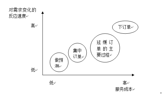 敏捷反应就是一种很好的途径。由于物流渠道的缩短,不仅可以为客户提供更加快捷的服务,还可以降低成本。不再从高水平与低成本两者中做出抉择,而是可以在两者中找到平衡点。如图所示: