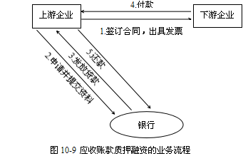 应收帐款质押融资就是出质人把应收帐款作为质押向质权人申请授信,出质人与质权人签订借款合同以及质押合同后,质权人向出质人提供融资。业务流程如图10-9所示。