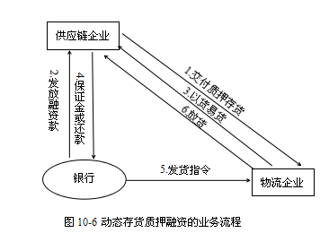 动态存货质押融资与静态存货质押融资相比,放松了以货易货的规定。动态存货质押融资是指供应链企业将存货质押给银行时,规定了供应链企业保有质押存货的最低库存,在保证质押存货最低库存的前提下,只要入库的存货与原有存货同类、同质,供应链企业就可以自由办理以货易货,在此基础上供应链企业可以通过质押的存货办理各种短期授信业务。对于达到最低库存临界点以下的货物,供应链企业必须补足保证金或归还融资款后方可提取。动态存货质押融资的业务流程如图10-6所示。
