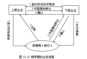 明保理的最大特征体现在,当供应链的上游企业将应收债权向保理商转让时,会立即以书面的形式将债权转让的事实通知下游企业。其业务流程如图10-10所示。