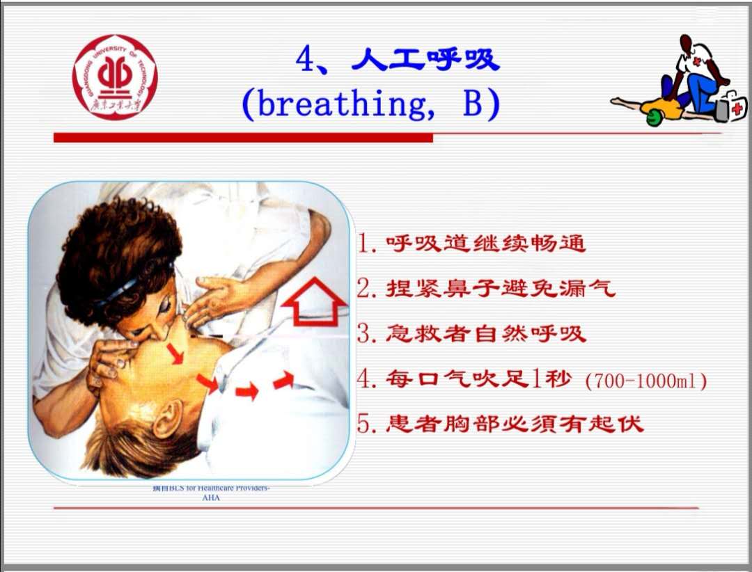 气道开放后进入第四阶段:人工呼吸。