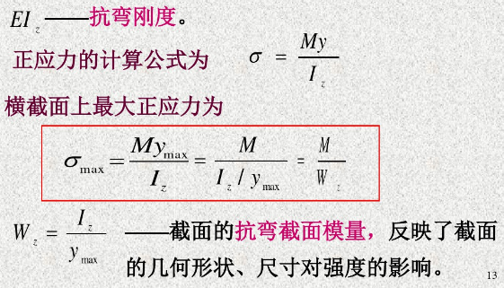 1、掌握矩形截面梁最大弯曲正应力的计算公式