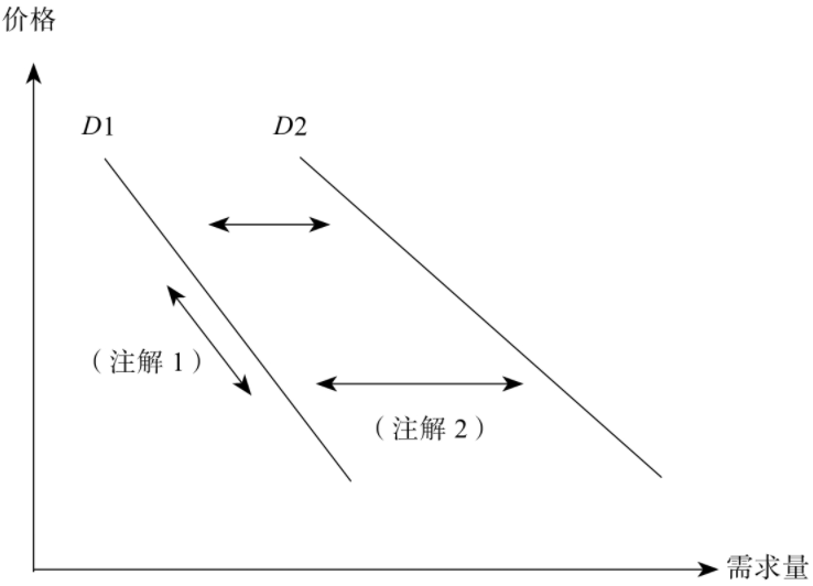 注解1:只有价格发生变化时,需求量沿同一条需求曲线滑动;
