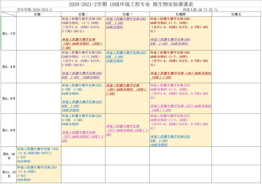 教师姓名 | 杨毅红 | 课程名称 | 环境工程微生物学 | 总学时数 | 32 | |
