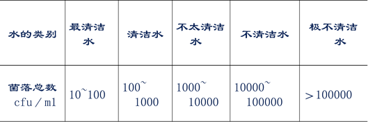 附表3 一般水源水中菌落总数与水清洁程度的关系