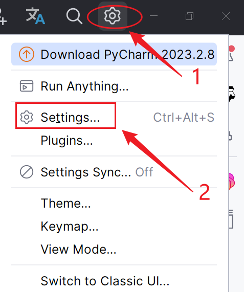 ① 单击界面右上角“设置”图标,选择Settings...