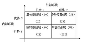 SO(优势-机会)战略:发挥企业内部优势把握外部机会,为企业未来战略增长业务。这是一种理想的组合。任何企业都希望凭借企业的长处和资源来最大限度地利用外部环境所提供的各种发展机会。如利用政策优势,做好品牌优势;利用地区优势,由点至面,推广产品;利用用途广泛优势,试用产品,树立品牌效应等。