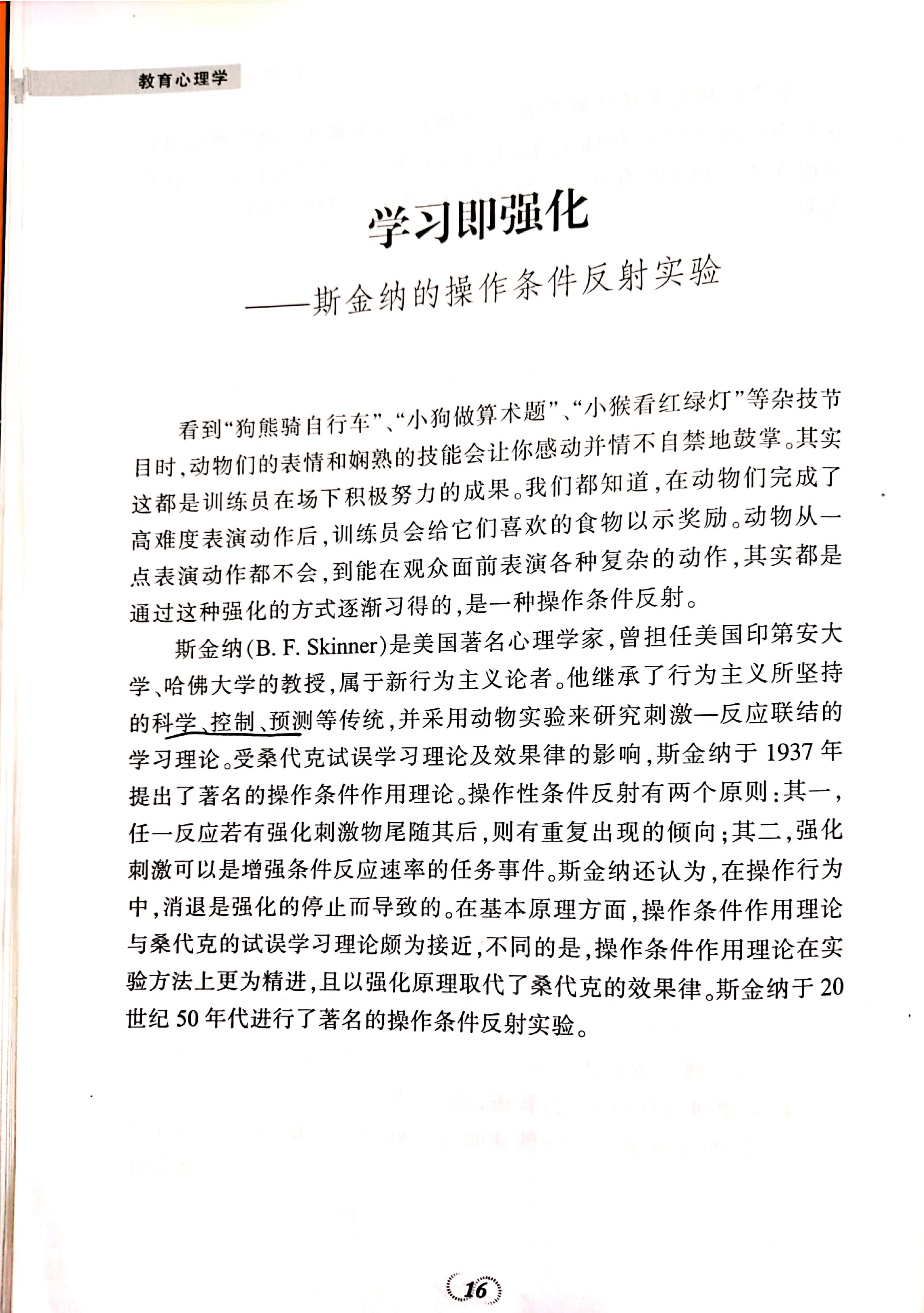 学习目标:理解操作性条件作用的内涵,掌握两种行为反应和两种条件反射的概念,理解强化、惩罚的内涵和分类。