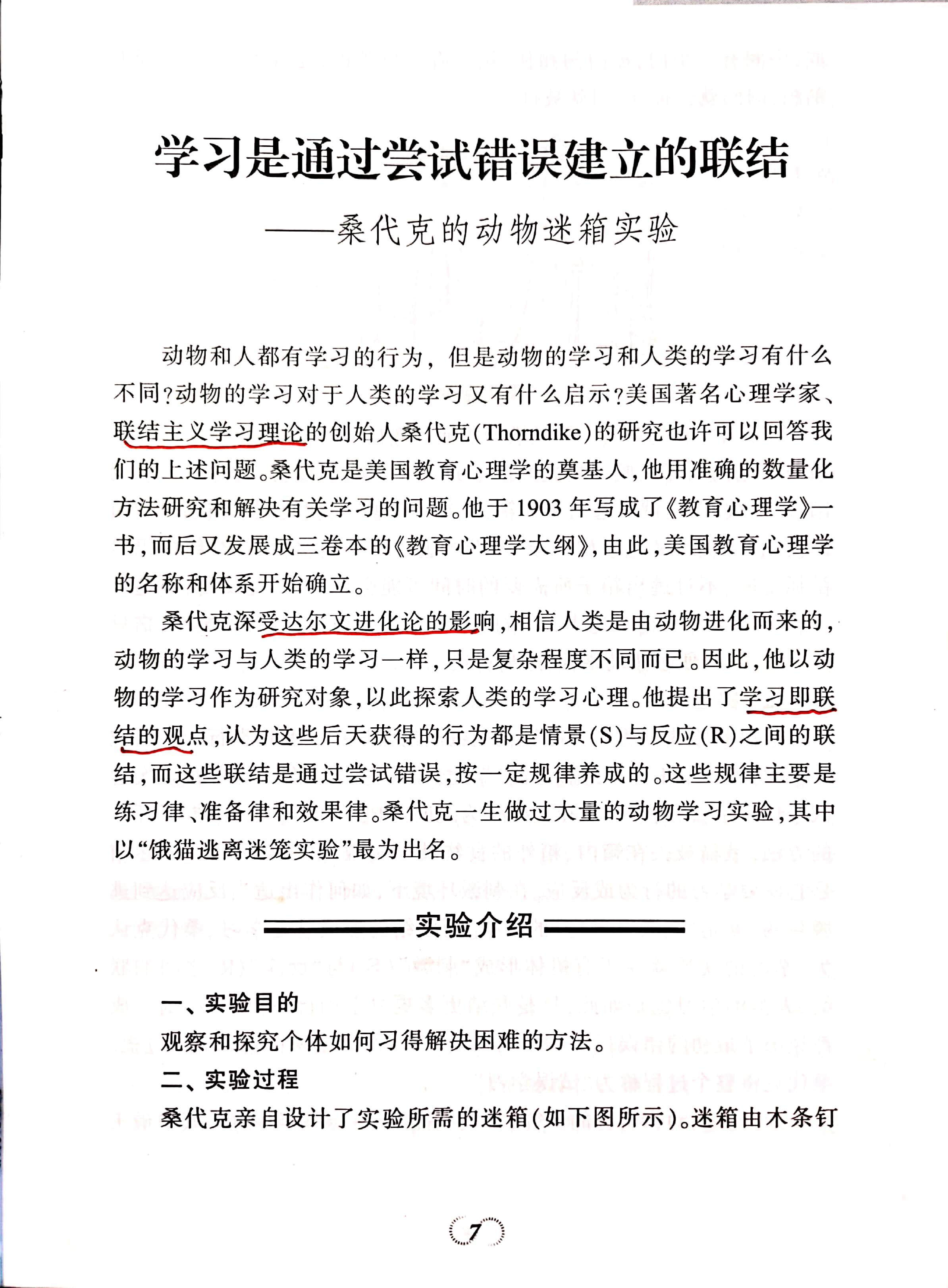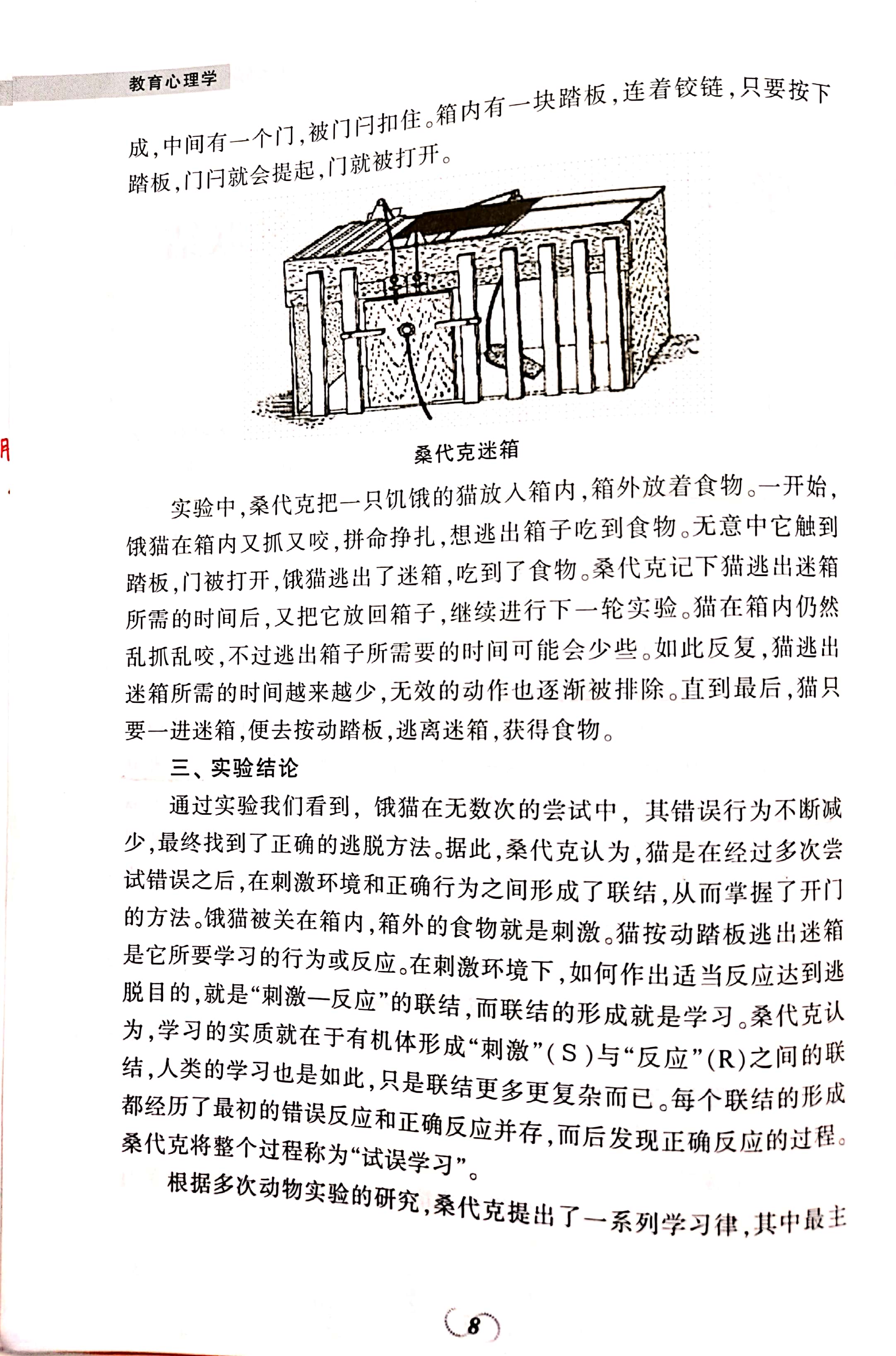 学习目标:理解桑代克试误-联结学习理论的内涵,掌握学习的三个定律。