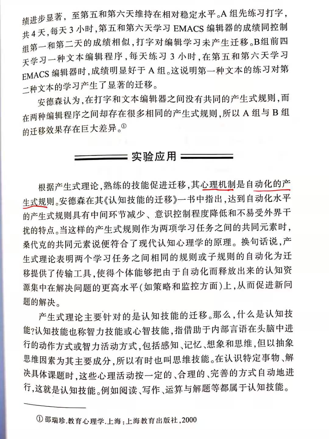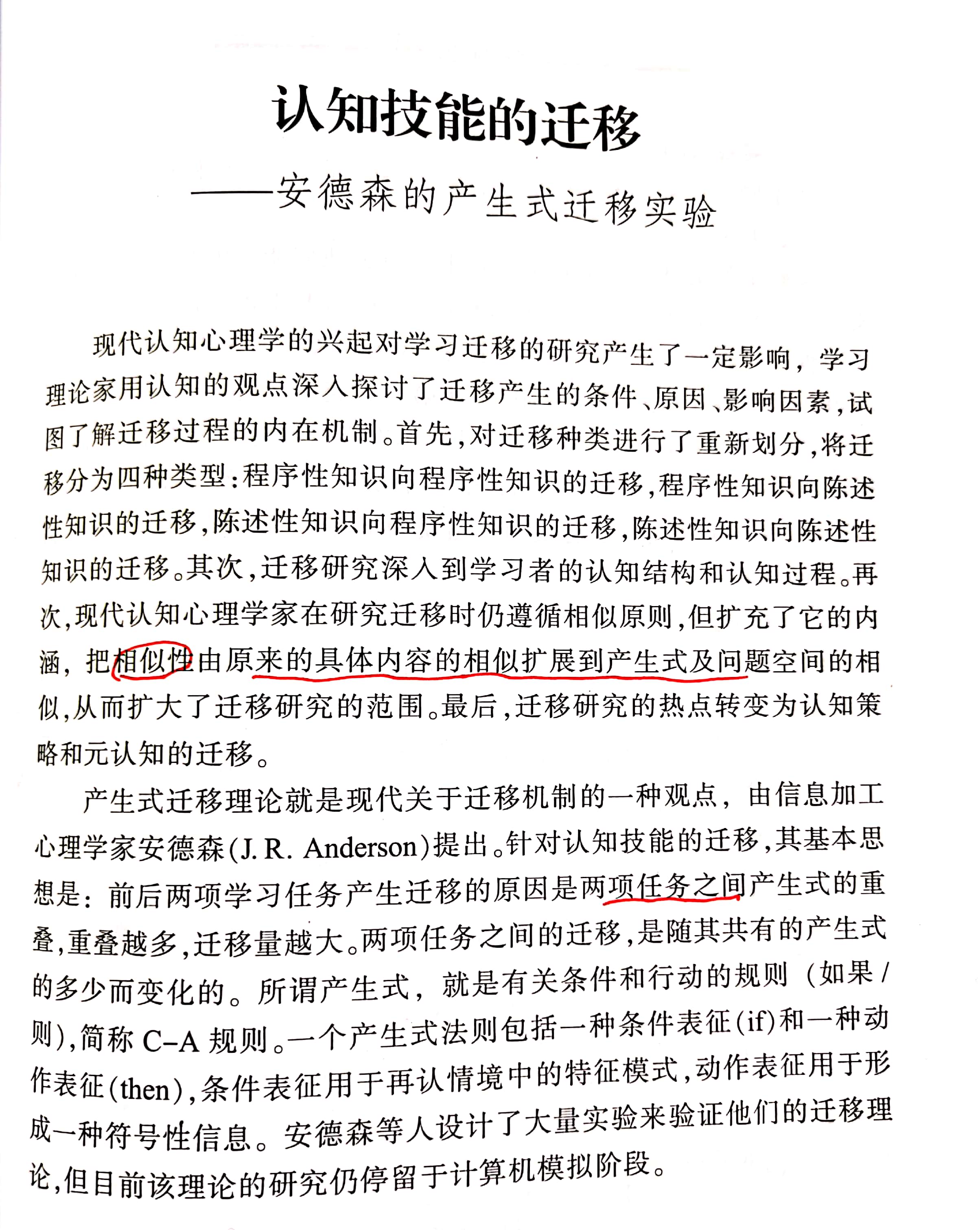 3、阅读安德森的产生式迁移实验,理解认知结构迁移理论、迁移的产生式理论和相同要素说的区别;