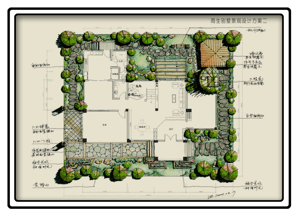一般情况下,设计开始时,首先在脑海中呈现出的是一个场地空间的形象。在此基础之上,结合具体的问题与场所条件,在头脑中形成三维的空间设计方案。然后当空间方案逐渐分析清楚之后,再将方案的平立剖图分别落在设定好的纸面之上。与此相反的先平立剖图后效果图则是,不少人会先把平立剖画好之后,再在平面的基础上升起效果图的空间设计。其实,大家在具体的操作中,完全可以培养适合于自己思维习惯的作画顺序。只要能够清斷地表达出自己的设计理念、方法和手段,至于效果图与平立部图谁先谁后出图并无大碍。