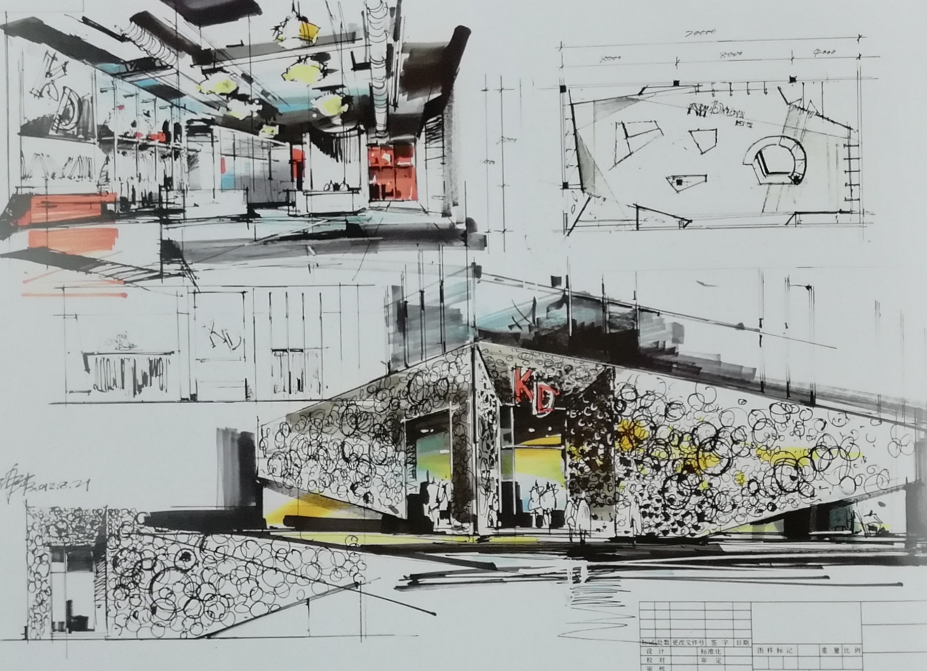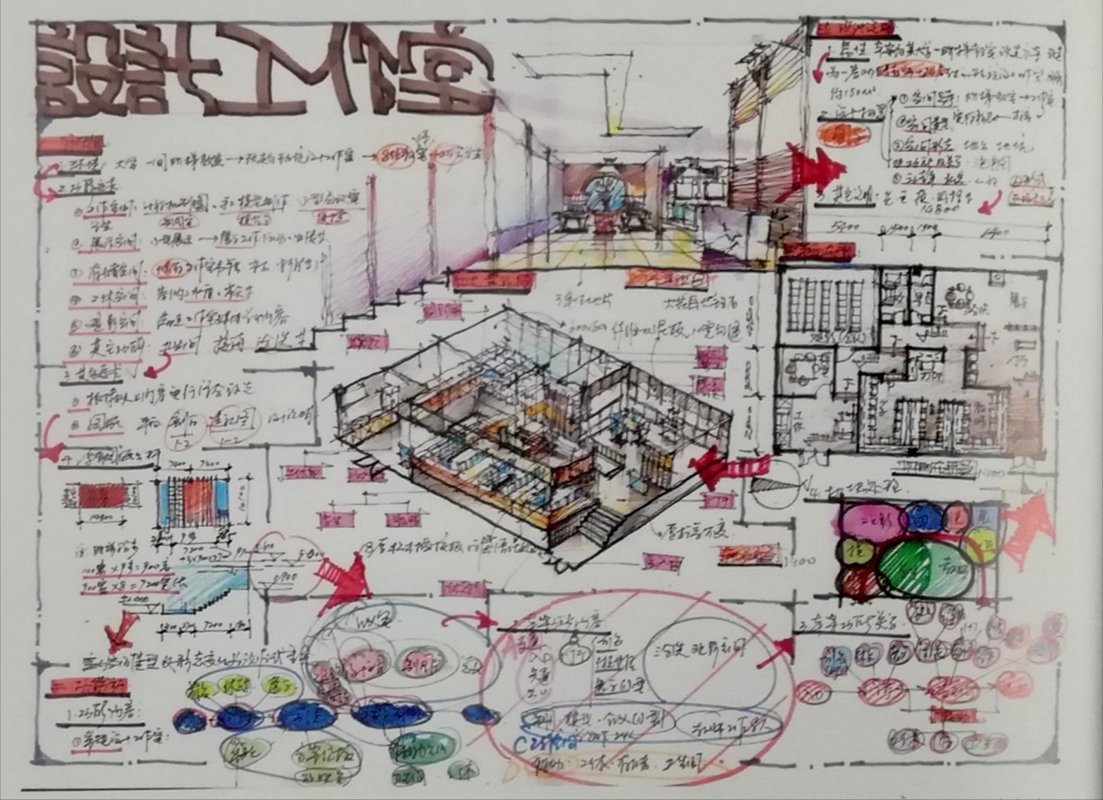 如果能够保证在既定时间内完成一套方案,完全可以灵活地安排作图顺序。建议大家根据自己的特点总结出自己的高效的方法,充分挖掘自己快速设计表达的潜能。大家也可以提醒自己回归到设计手绘的初衷是为了清断地表达自己解决问题的手段上来。所以,在明确目的的同时完成手绘训练,一步步提高自己的眼界和手头功夫。