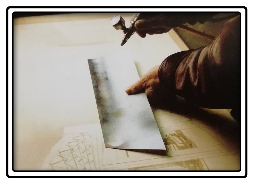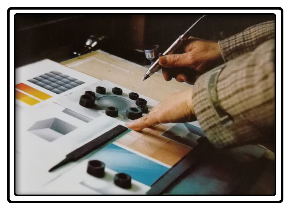 喷绘的工具主要有空气压缩机与喷笔。在绘制效果图时还需要绘图的颜料、纸张、遮挡膜(板)、裁纸刀毛笔、槽尺和若千调色用小型容器。