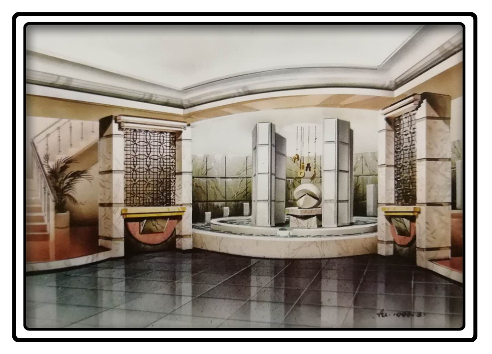 在喷绘的过程中,对墙面、地面、顶棚等面积较大的部分一定要做到近实远虚的效果,喷绘石材和反光材料时要强调倒影和高光。