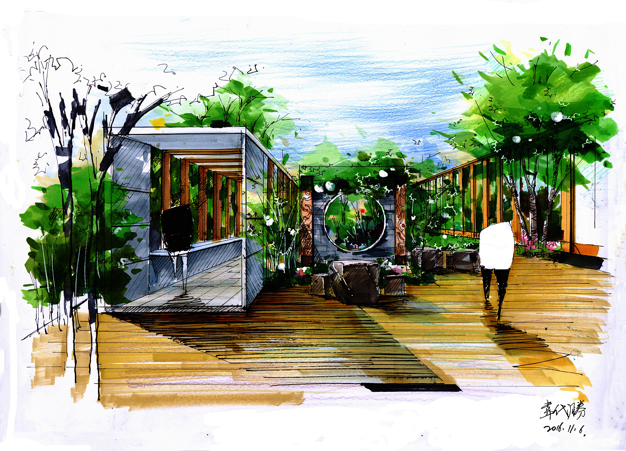 接下来就是设计师的设计创意阶段,这标志着设计者已经进入一个新的层次。作者在效果图的绘制过程中应有效地通过一些有计划的、成熟的想法和手法,使设计作品本身比实际环境更加突出、更加完美,取得生动感人、耐人寻味的效果,从而使人们感受到赏心悦目的新的建筑艺术环境。