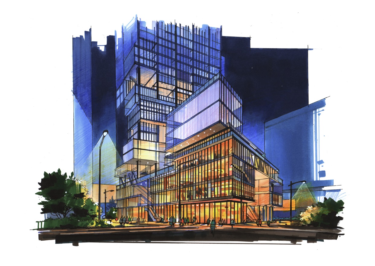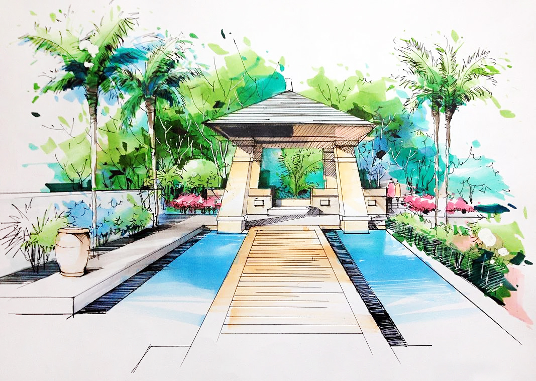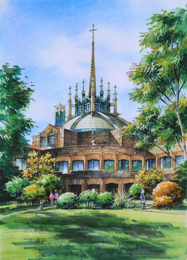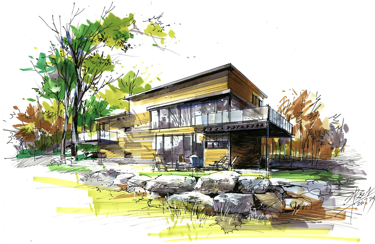 建筑设计手绘效果图表现(视频节选自风暴手绘)