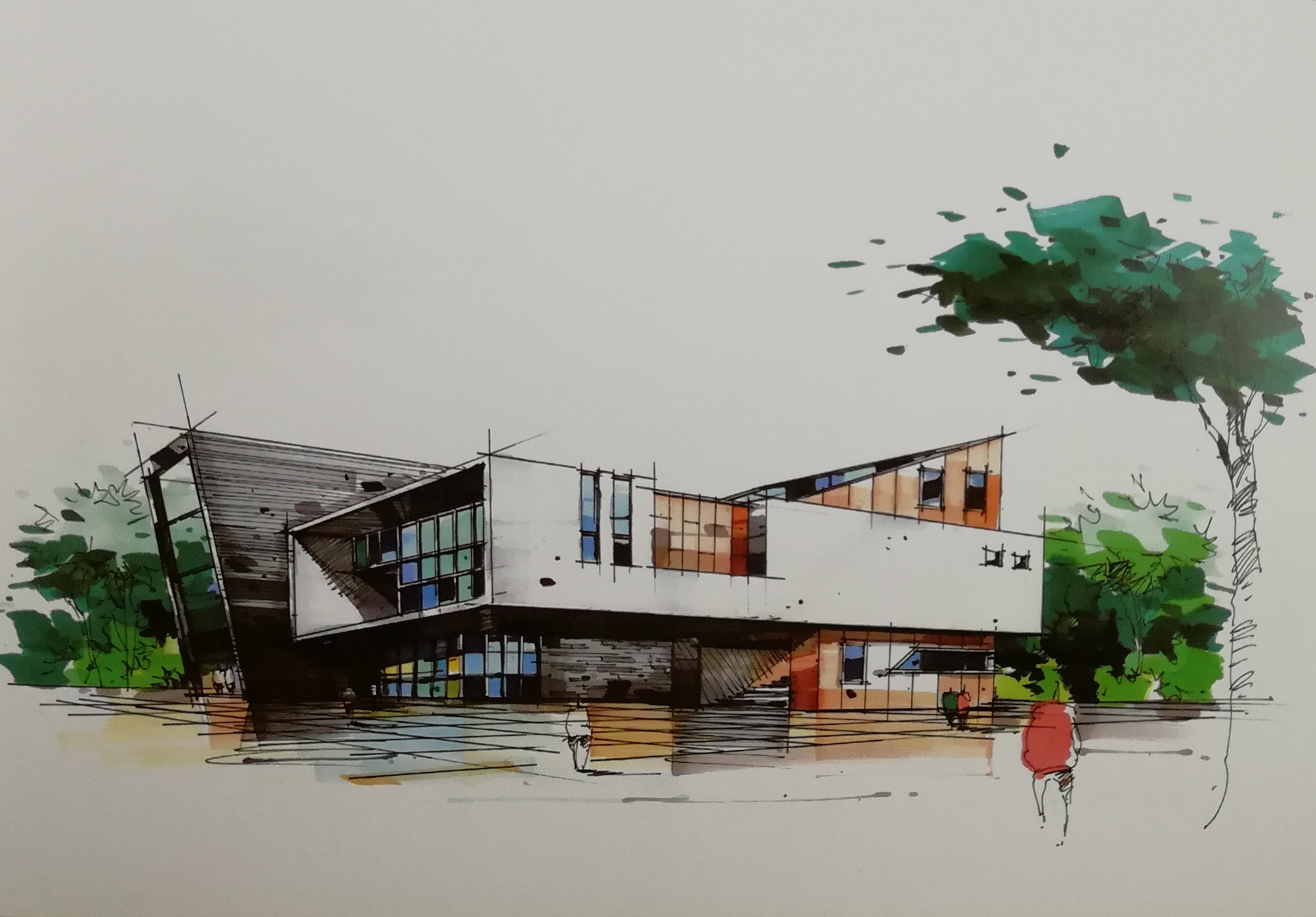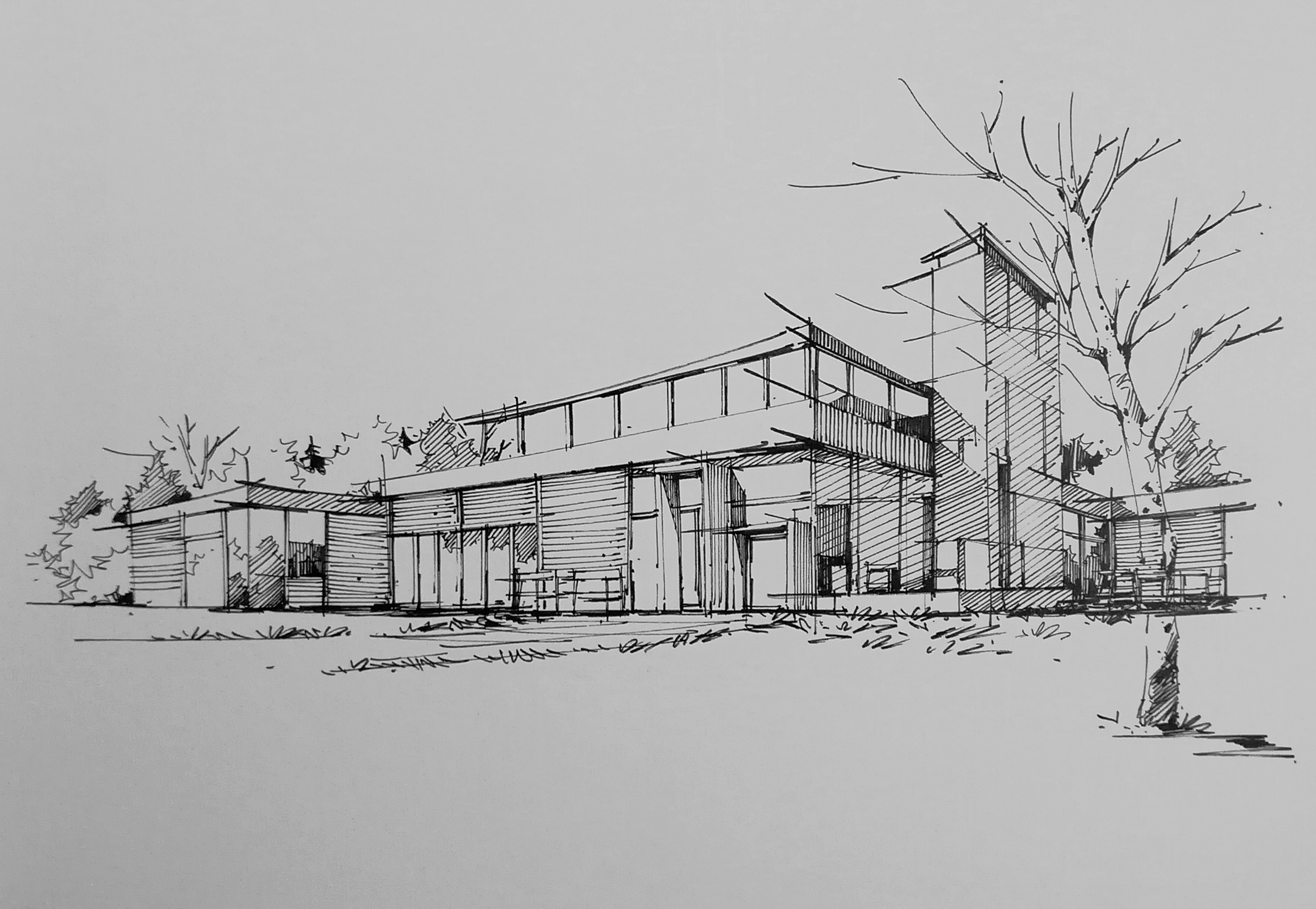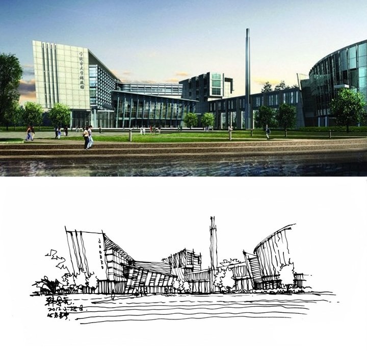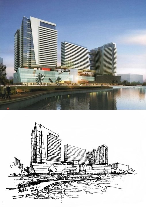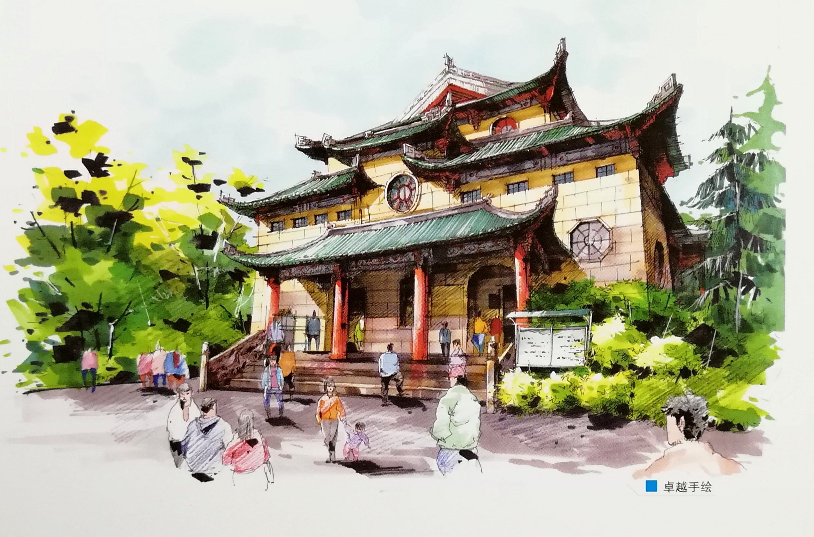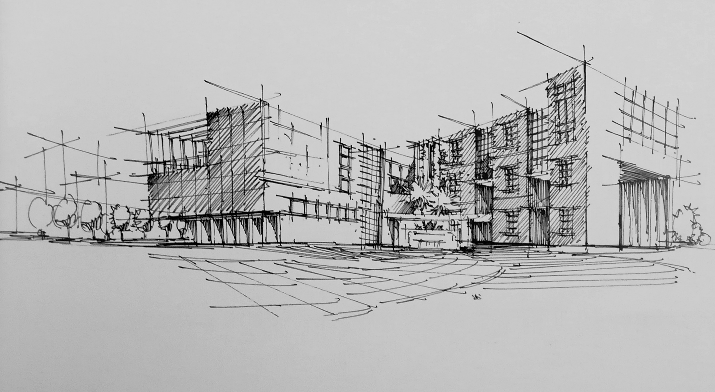 建筑表现技法课程的重点:建筑外观钢笔、马克笔表现技法的学习,草图,快题设计表现。