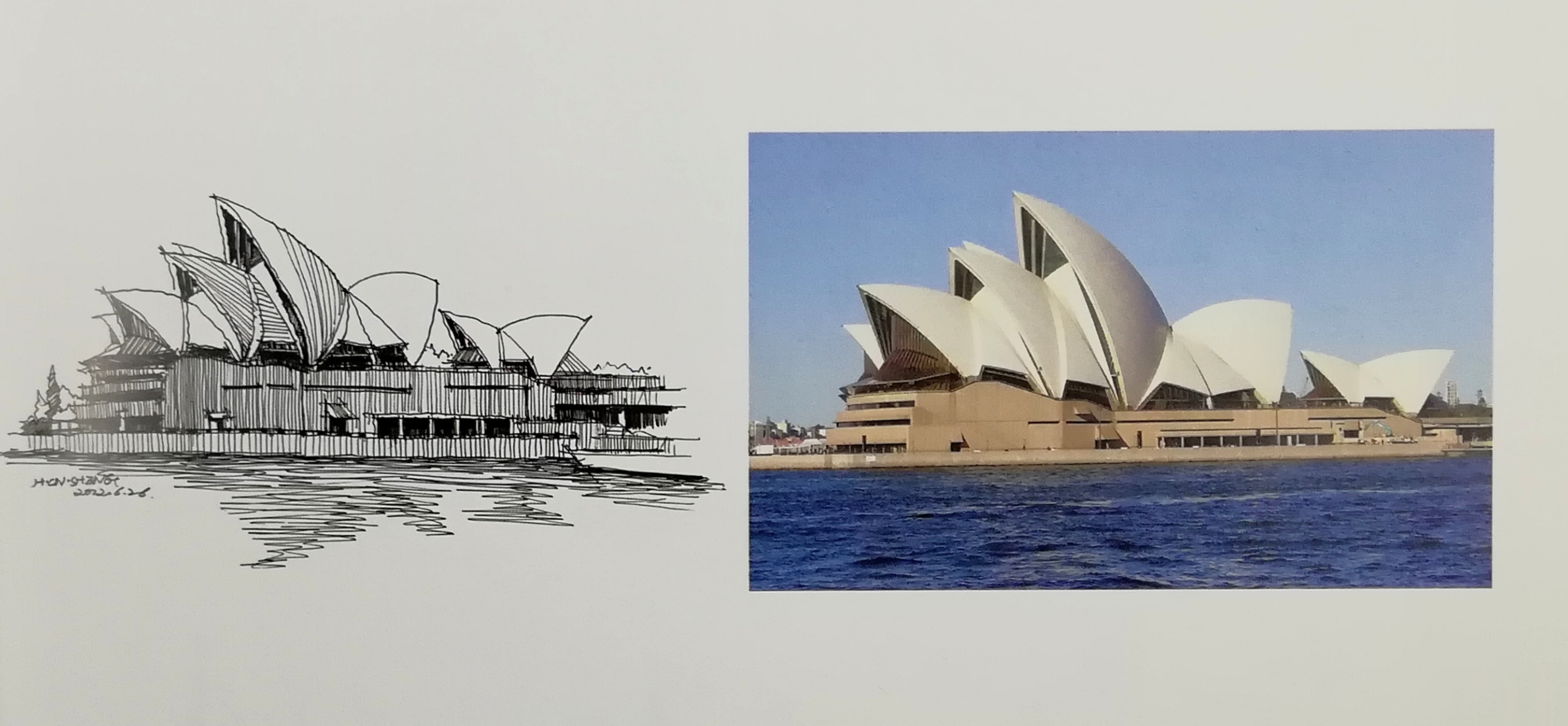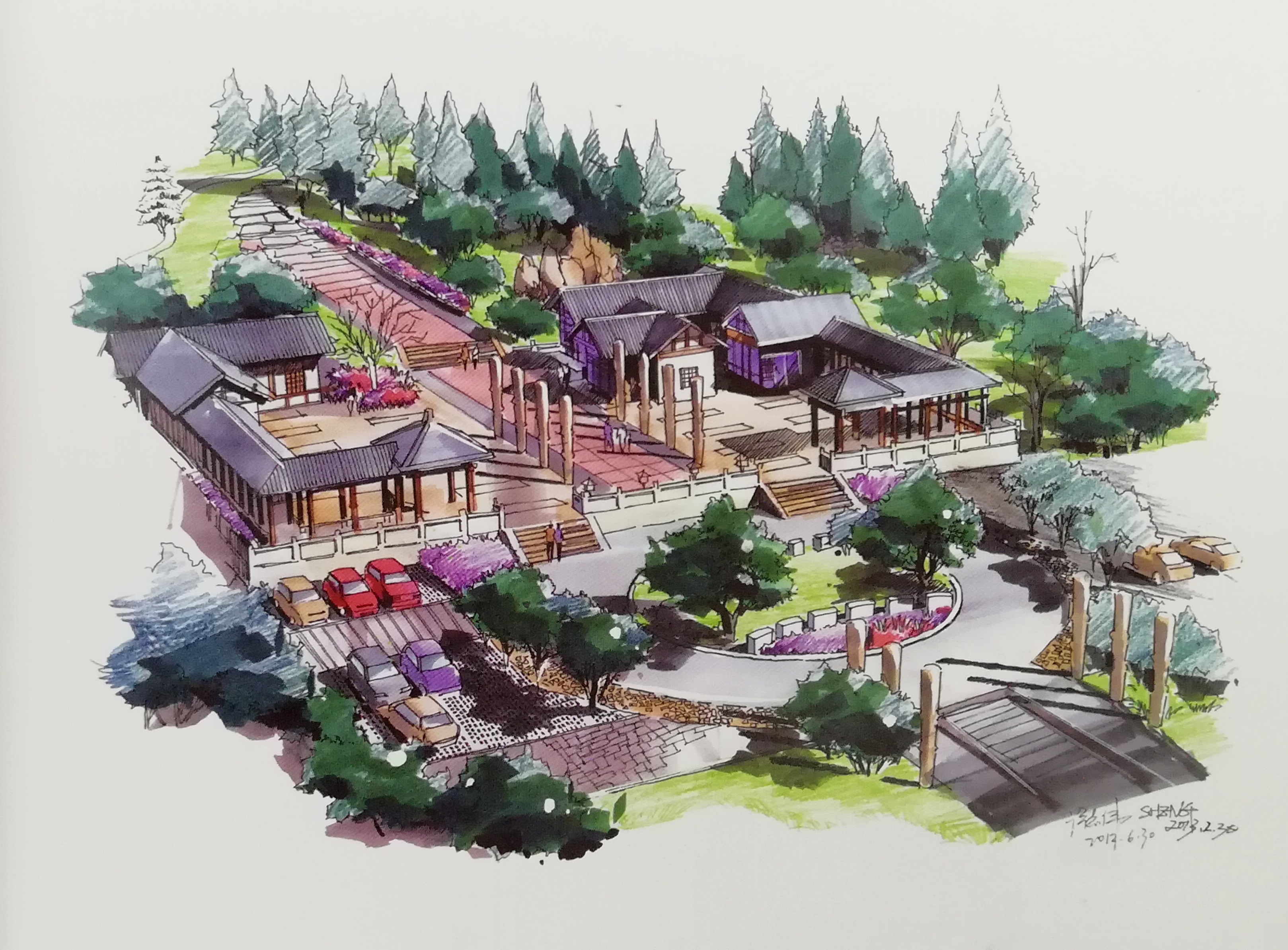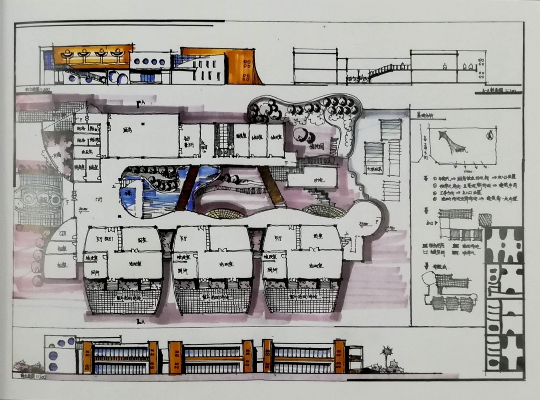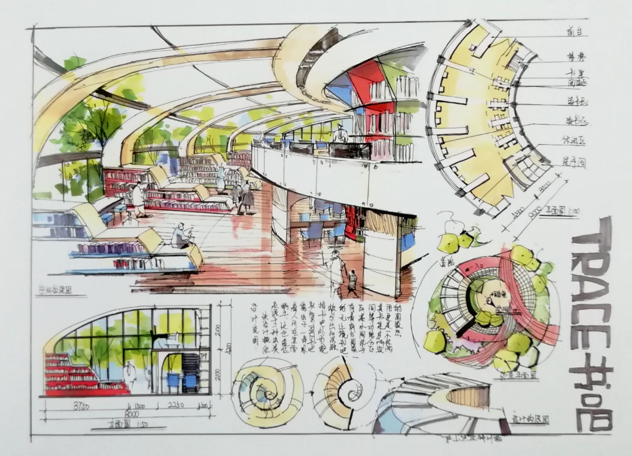 建筑表现技法课程的重点:建筑外观钢笔、马克笔表现技法的学习,草图,快题设计表现。
