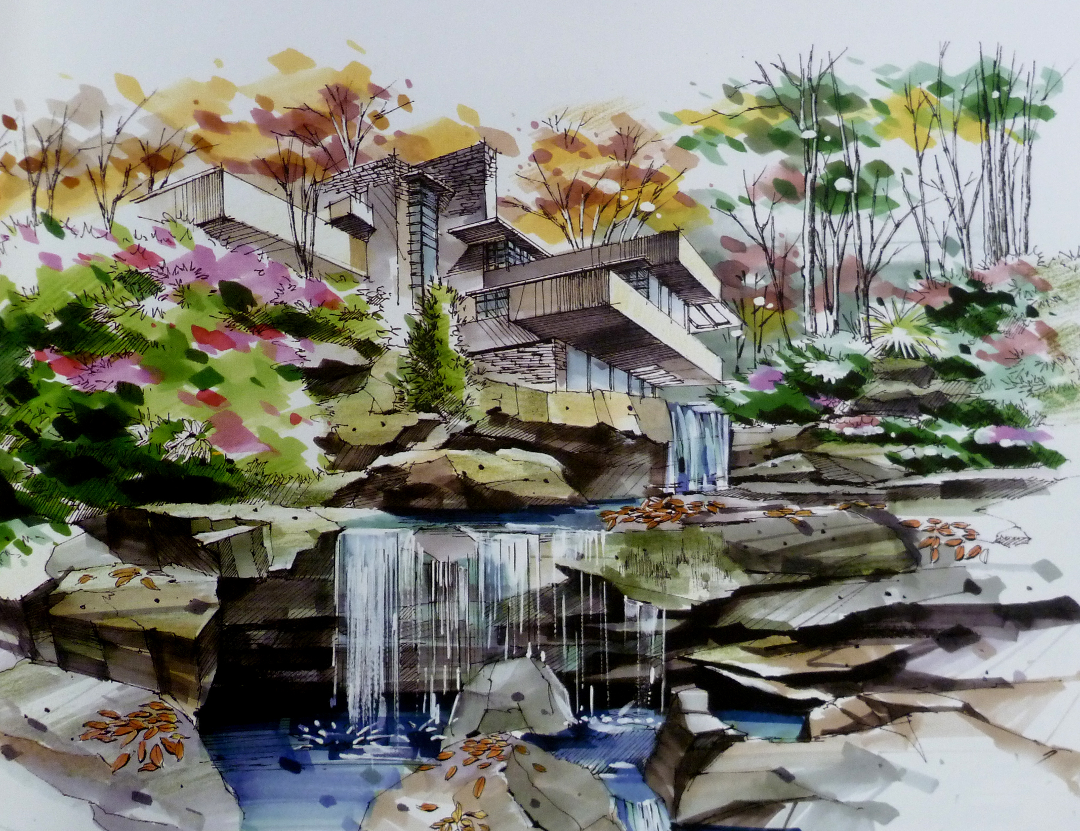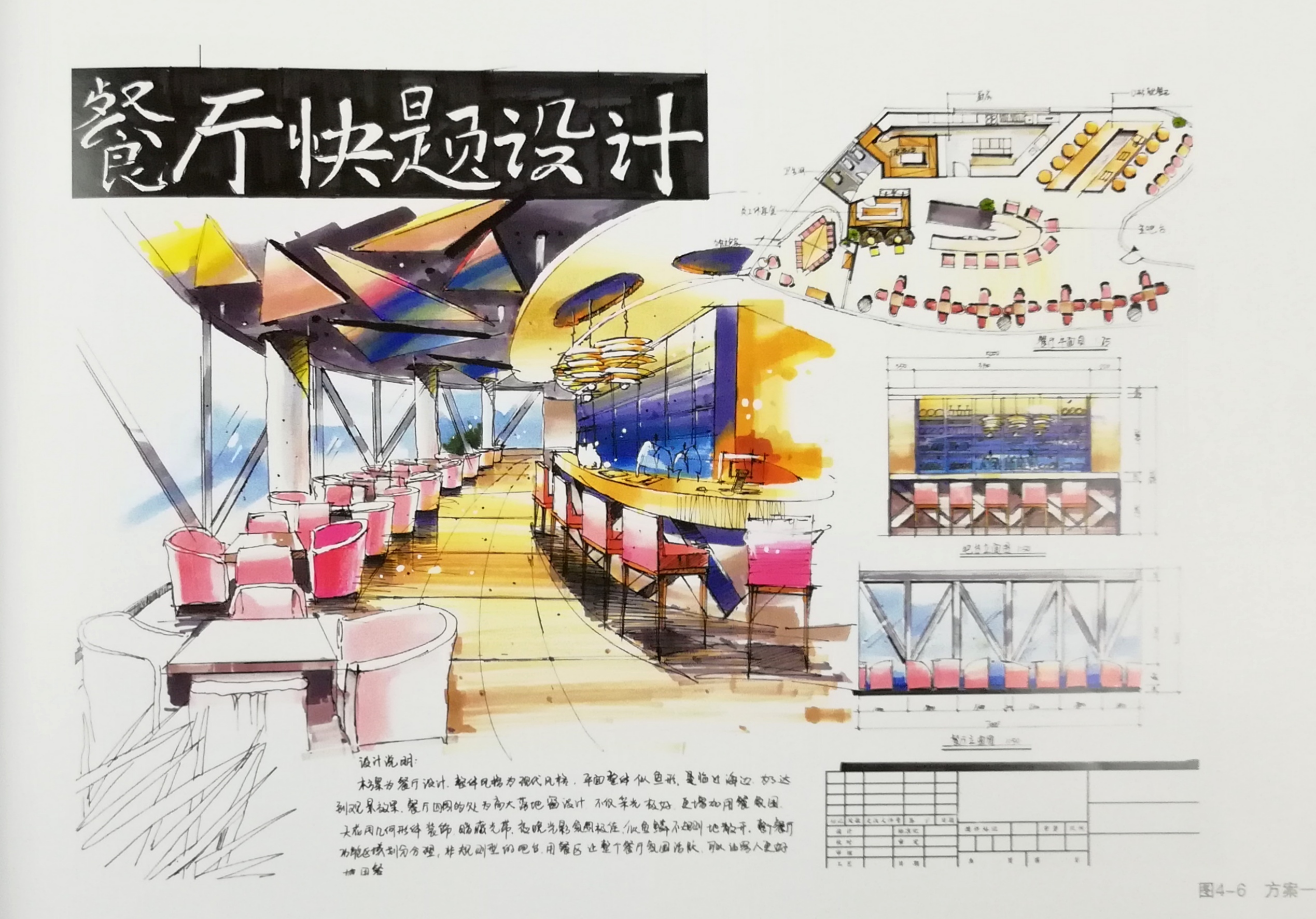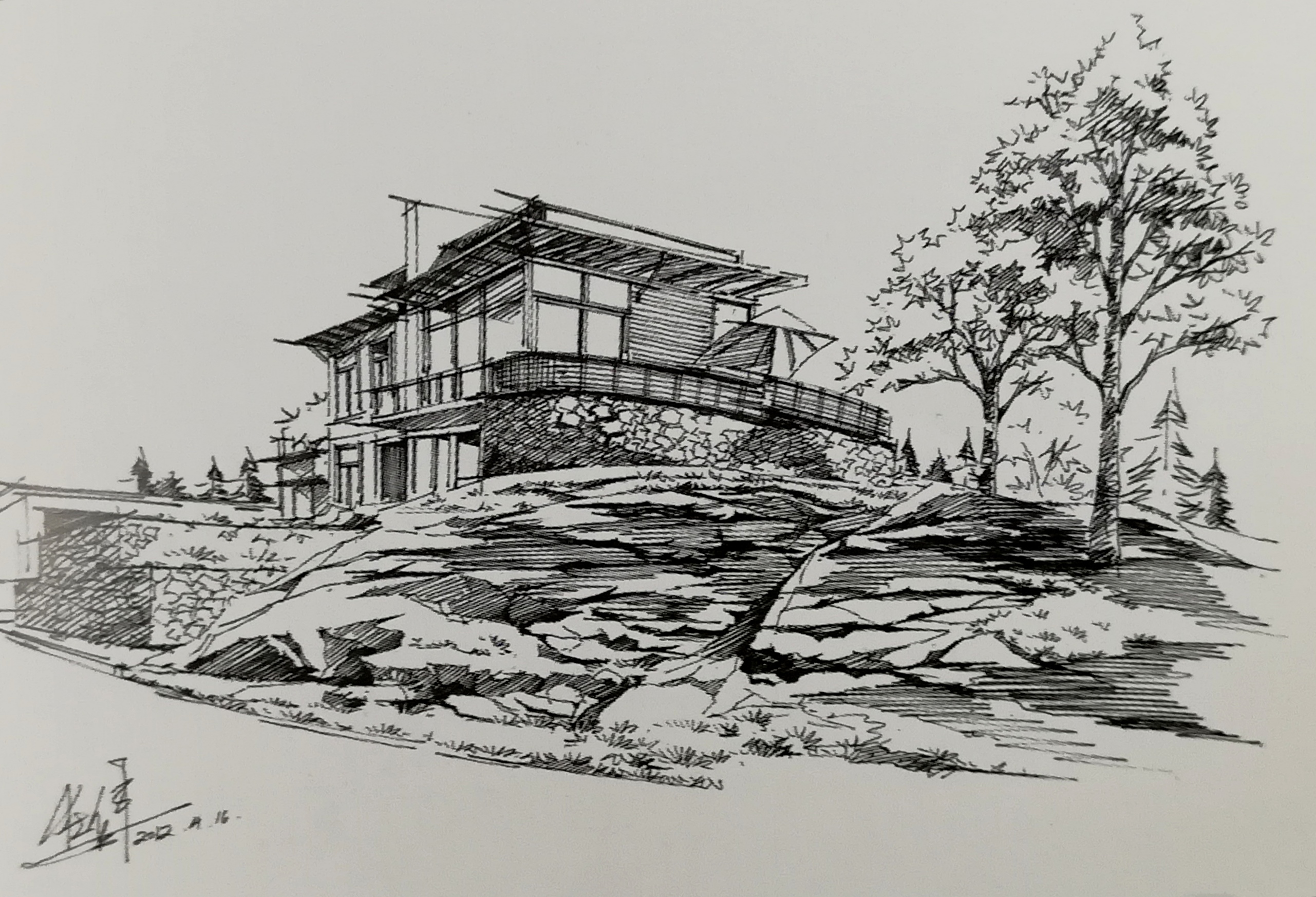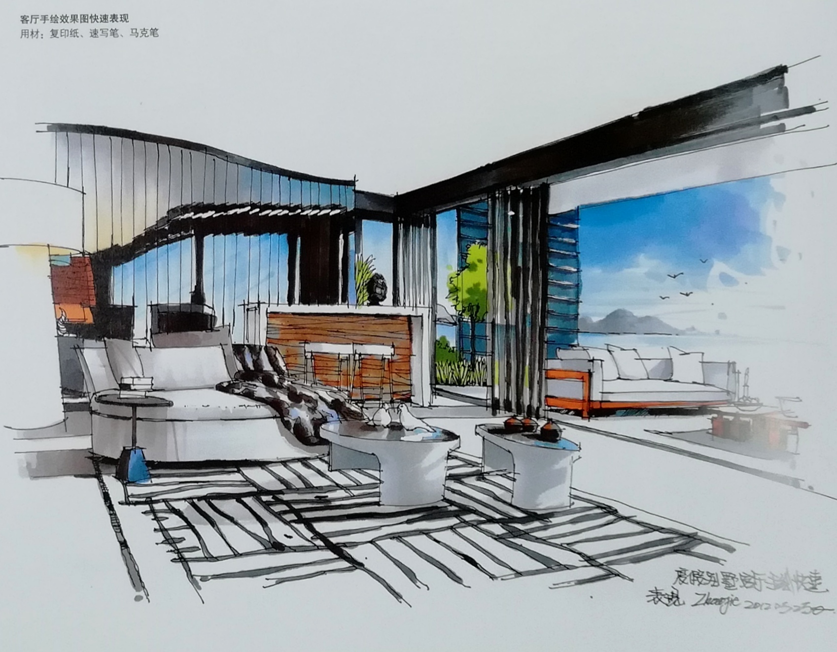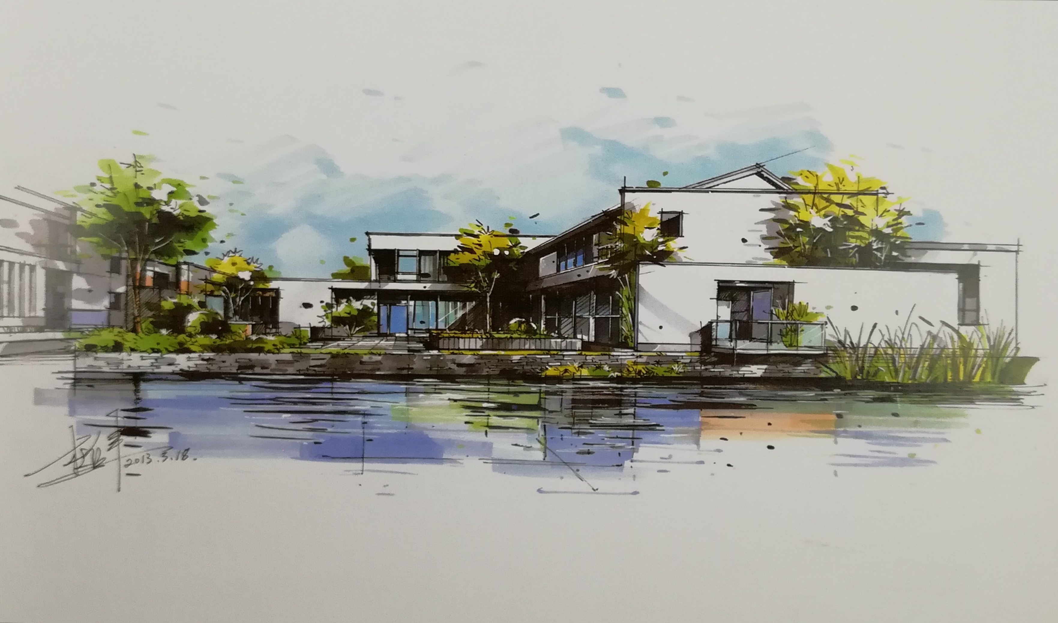 建筑表现技法课程的主要内容:钢笔、彩色铅笔、马克笔表现技法。将钢笔、彩色铅笔、马克笔现技法用于建筑室内外手绘效果图,建筑平面图、立面图,室内平面图、立面图,节点大样图以及各种分析图。包括定稿效果图和草图,快题设计表现等。