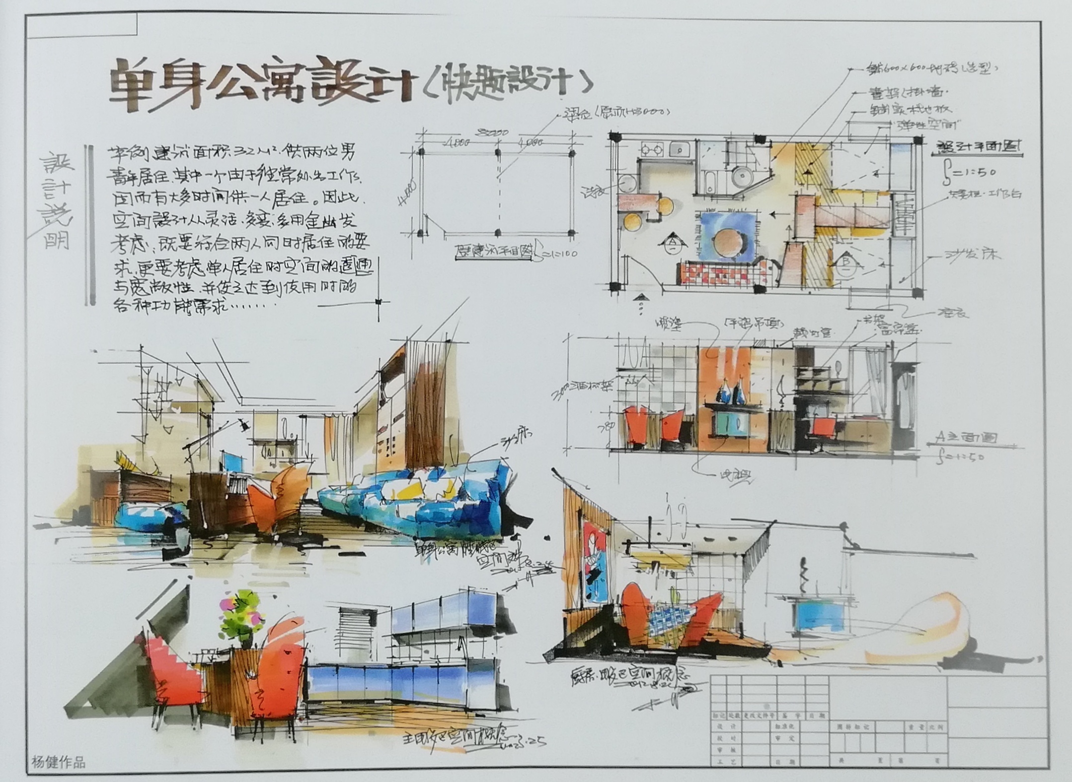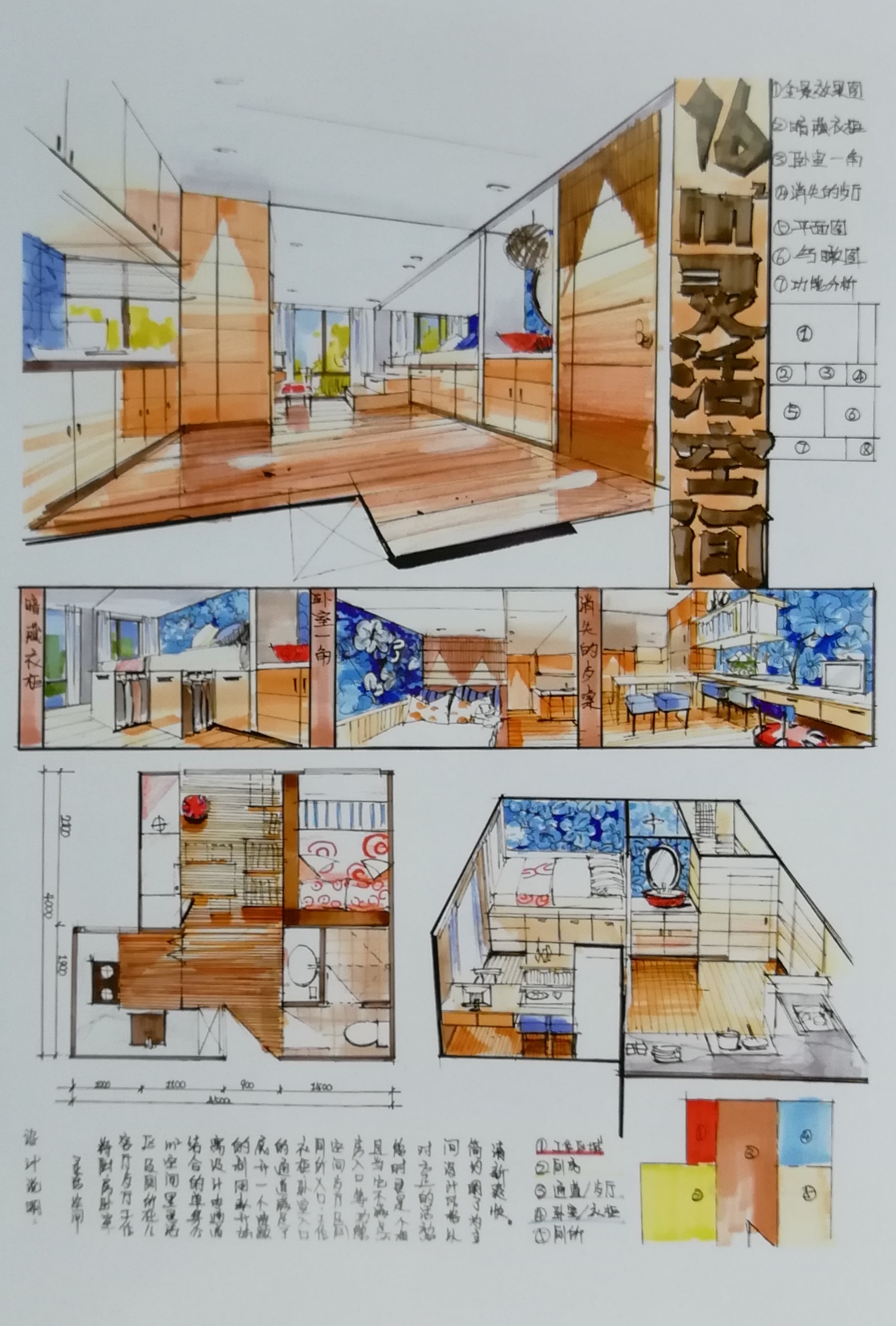 (二)、定稿手绘效果图(计平期未分30%,交齐作业可合格,优秀可得高分)