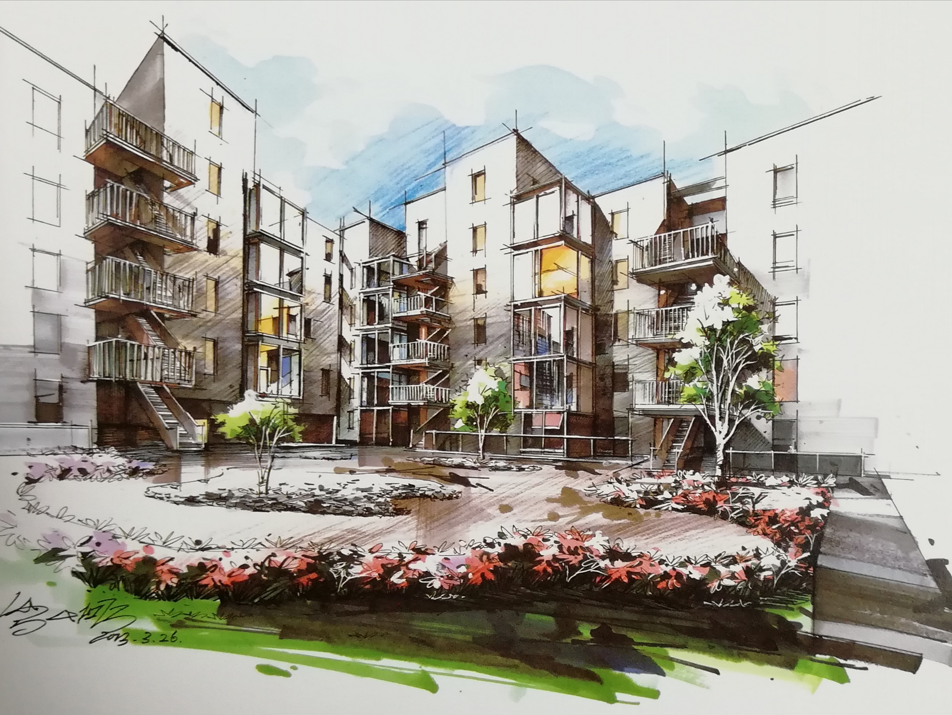 在6周内完成3张A3大小的定稿手绘效果图。内容可以是完整的建筑设计场景临摩,室外建筑为主,也可以是完整的观景设计的手绘效果图临摩,也可以是公共建筑的室内手绘效果图临摩。可以在课本中选图临摩,也可在课外资料中选图临摩。要求运用钢笔、、彩色铅笔、马克笔表现技法完成作业。作业画在A3大小的复印纸上,不用装裱。