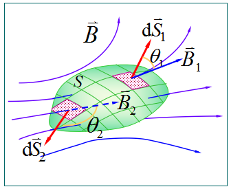 磁场中的高斯定理:穿过任意闭合曲面的总磁通量必为零.
