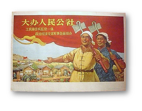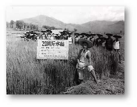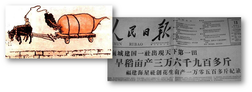 从这年夏季开始,只经过了几个月时间,全国74万个农业生产合作社合并成为2.6万多个人民公社。人民公社实行“政社合一”的体制,其基本特点被概括为“一大二公”。在大跃进中,高指标、瞎指挥、虚报风、浮夸风、“共产风”盛行,各地纷纷提出工业大跃进和农业大跃进的不切实际的目标,片面追求工农业生产和建设的高速度,大幅度地提高和修改计划指标。