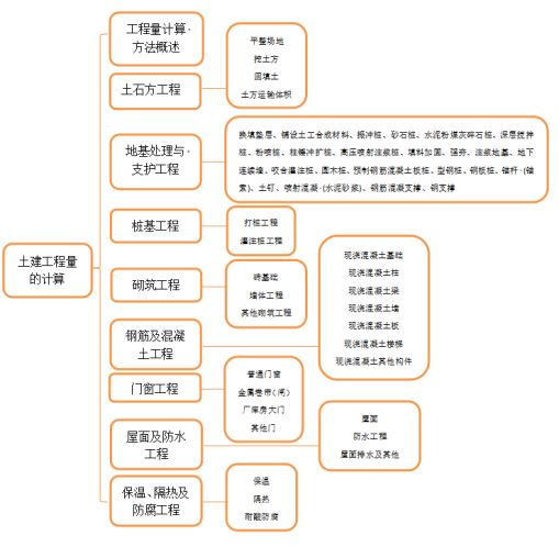教学目标 | 知识目标: 掌握土石方工程、地基处理及边坡支护工程、桩基工程、砌筑工程、钢筋及混凝土工程、门窗工程、屋面及防水工程、保温、隔热、防腐工程计量规则及计算方法。 能力目标: 能够运用所学计量规则解决工程案例中遇到的问题。 素质目标: 1.形成具有创新精神、自觉学习的态度和职业意识。 2.形成适应当代建筑工程工匠精神的就业观和人生观。 |