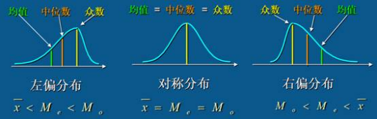 算术平均数、众数和中位数之间的关系与次数分布数列有关。在次数分布完全对称时,算术平均数、众数和中位数都是同一数值;在次数分布非对称时,算术平均数、众数和中位数不再是同一数值了,而具有相对固定的关系。在尾巴拖在右边的正偏态(或右偏态)分布中,众数最小,中位数适中,算术平均数最大;在尾巴拖在左边的负偏态(或左偏态)分布中,众数最大,中位数适中,算术平均数最小。