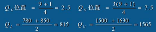 2.)确定中数的位置:(n+1)/4和 3(n+1)/4