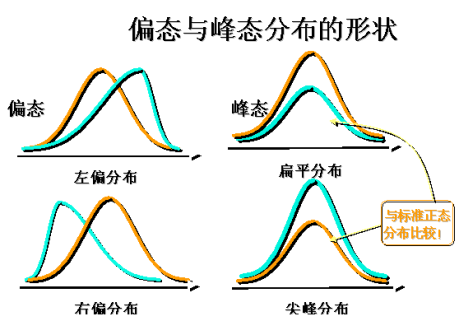 变量分布的形状要用形状指标来反映。形状指标就是反映变量分布具体形状,即左右是否对称、偏斜程度与陡峭程度如何的指标。