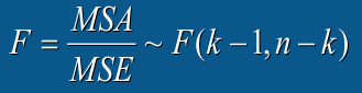 将MSA和MSE进行对比,即得到所需要的检验统计量F。