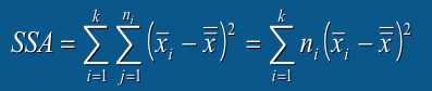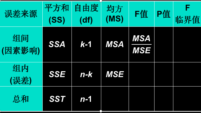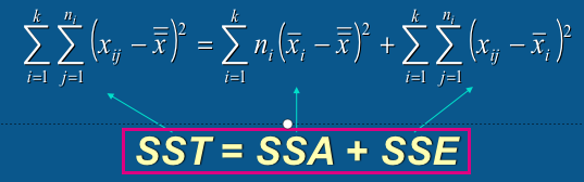 总离差平方和(SST)、误差项离差平方和(SSE)、水平项离差平方和 (SSA) 之间的关系: