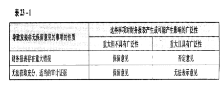 非无保留意见是指对财务报表发表保留意见、否定意见或无法表示意见。