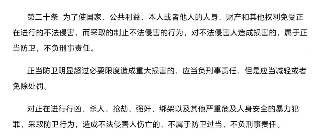 《中华人民共和国刑法》第二十条释义(正当防卫)