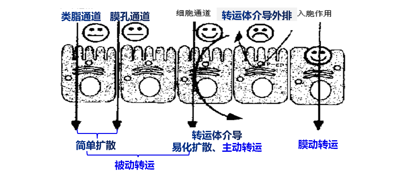 药物跨膜转运途径与机制
