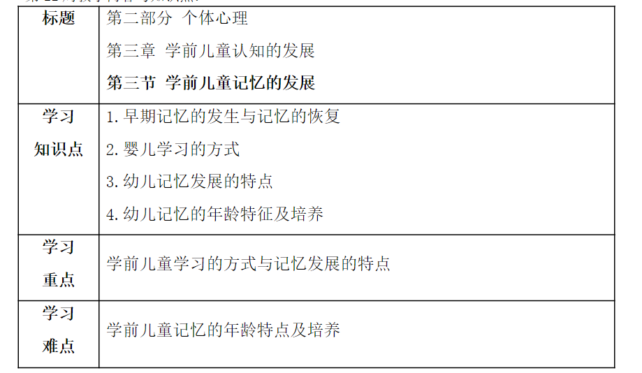 第三章学前儿童认知的发展——第二个知识点学前儿童记忆的发展