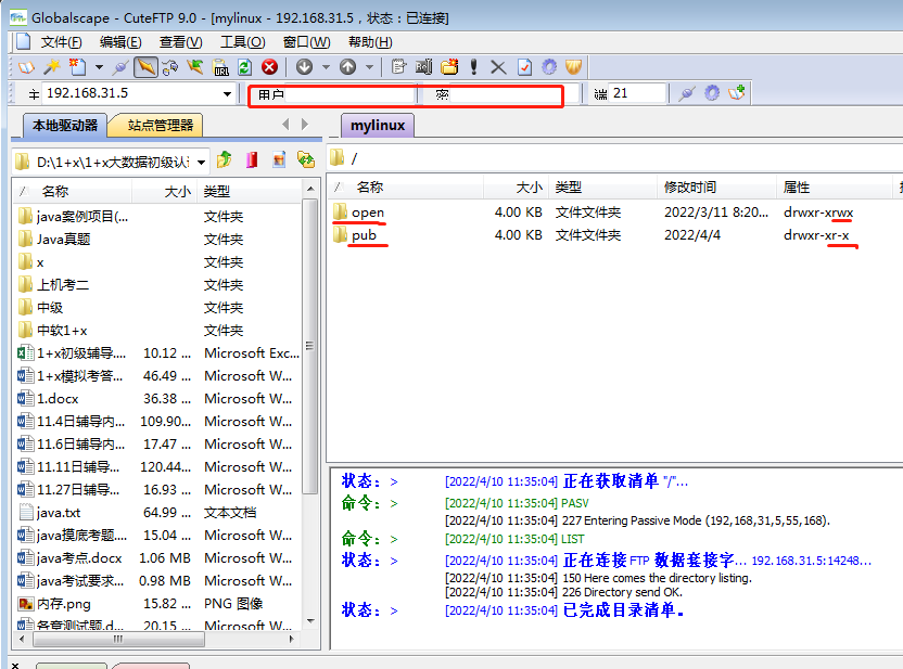 (3)能够从客户端访问FTP服务器,下载和上传文件