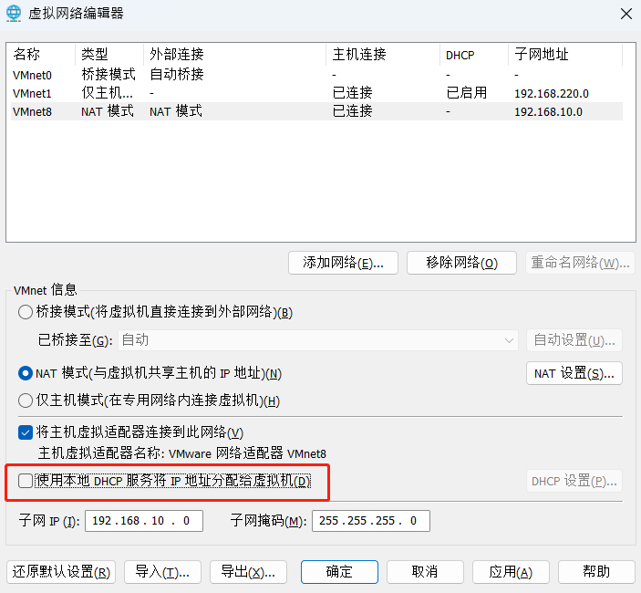 (1)关闭VMnet8和VMnet1的DHCP服务功能