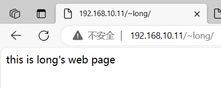 5. 在客户端的浏览器中输入http://192.168.10.11/~long,看到的个人空间的访问效果如图所示。