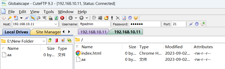 [root@Server ~]#chown ftpadmin.ftpadmin /www/html