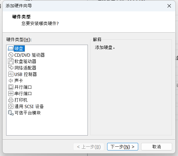 通过虚拟机的添加硬件向导,添加100G的硬盘