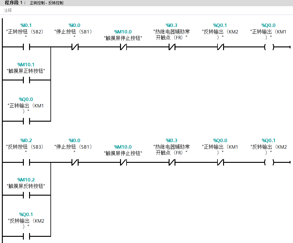 在《电工技术》课程中,我们学会了使用继电器-接触器对额定电压为交流380V三相异步电动机进行正反转控制。现在我们使用S-1200/1500 PLC控制来替换原来的继电器-接触器控制电路部分,同样控制三相异步电动机的正反转,要求该电气系统具有短路保护、过载保护等功能。具体的控制要求如下: