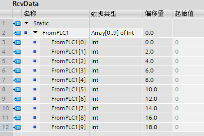 在线监测PLC_1的SendData[DB2]、RcvData[DB1]
