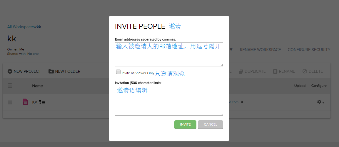 在浏览器登录 Axure share,在 kk工作区邀请小伙伴。