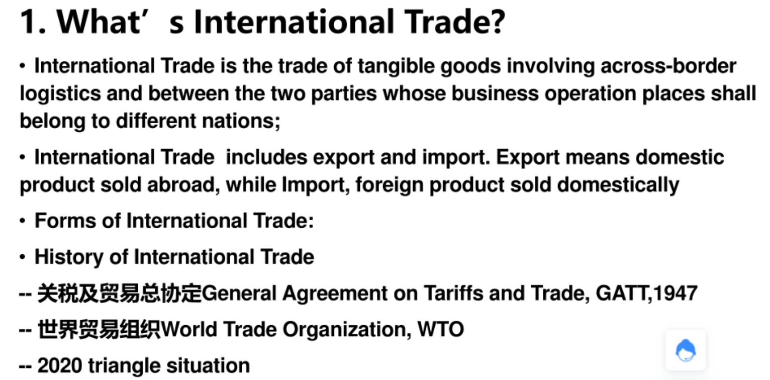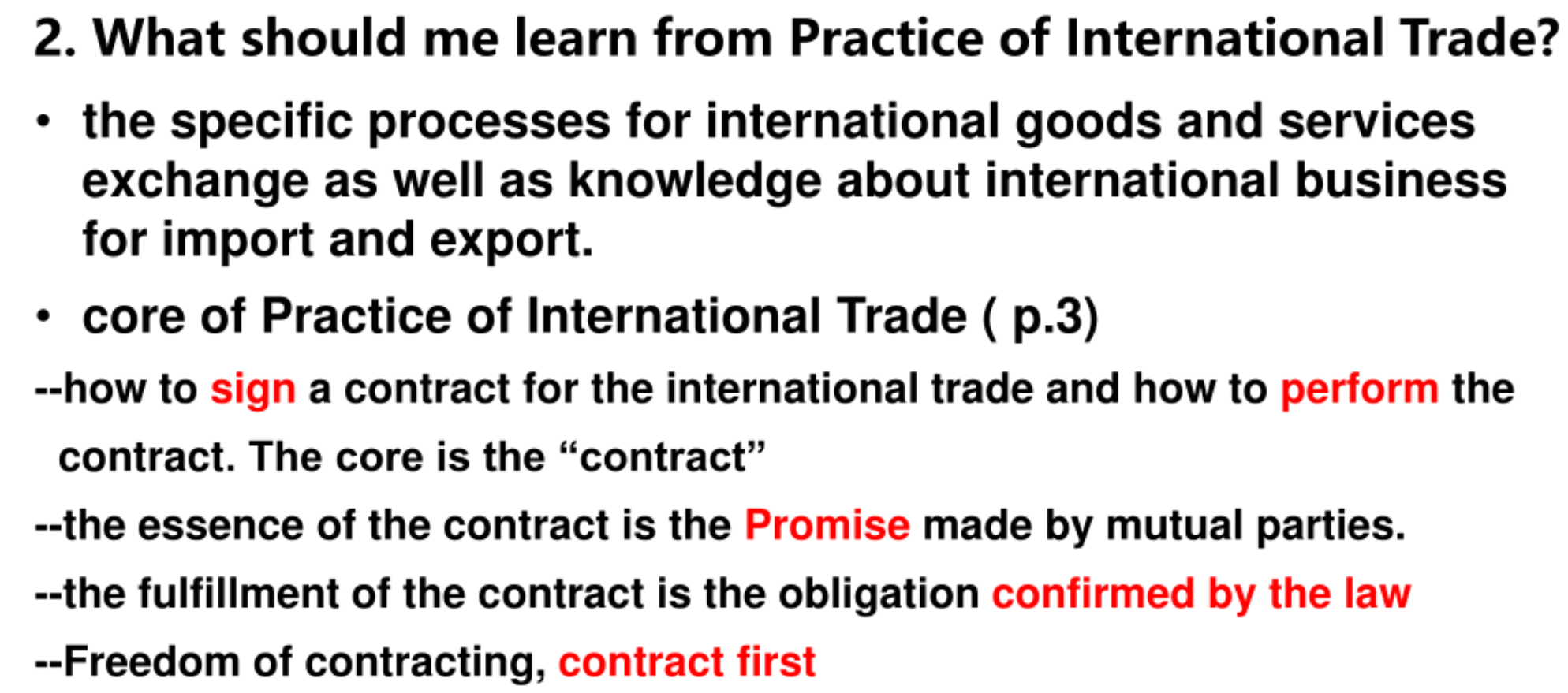 2. What's the core/learning target of this course--Practiceof International Trade?