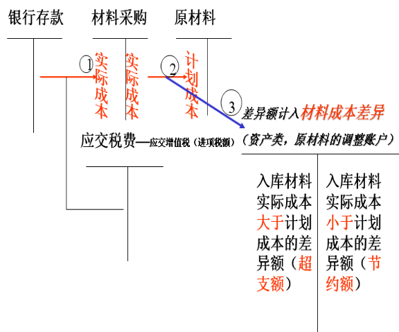 第一种情况:入库材料的实际成本大于计划成本(超支)