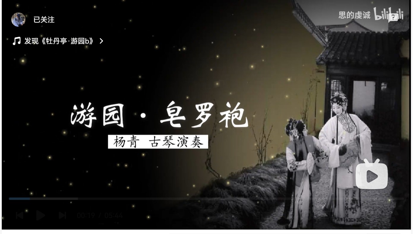 著名古琴家杨青演奏《牡丹亭·游园·皂罗袍》(选自《琴赏牡丹》)