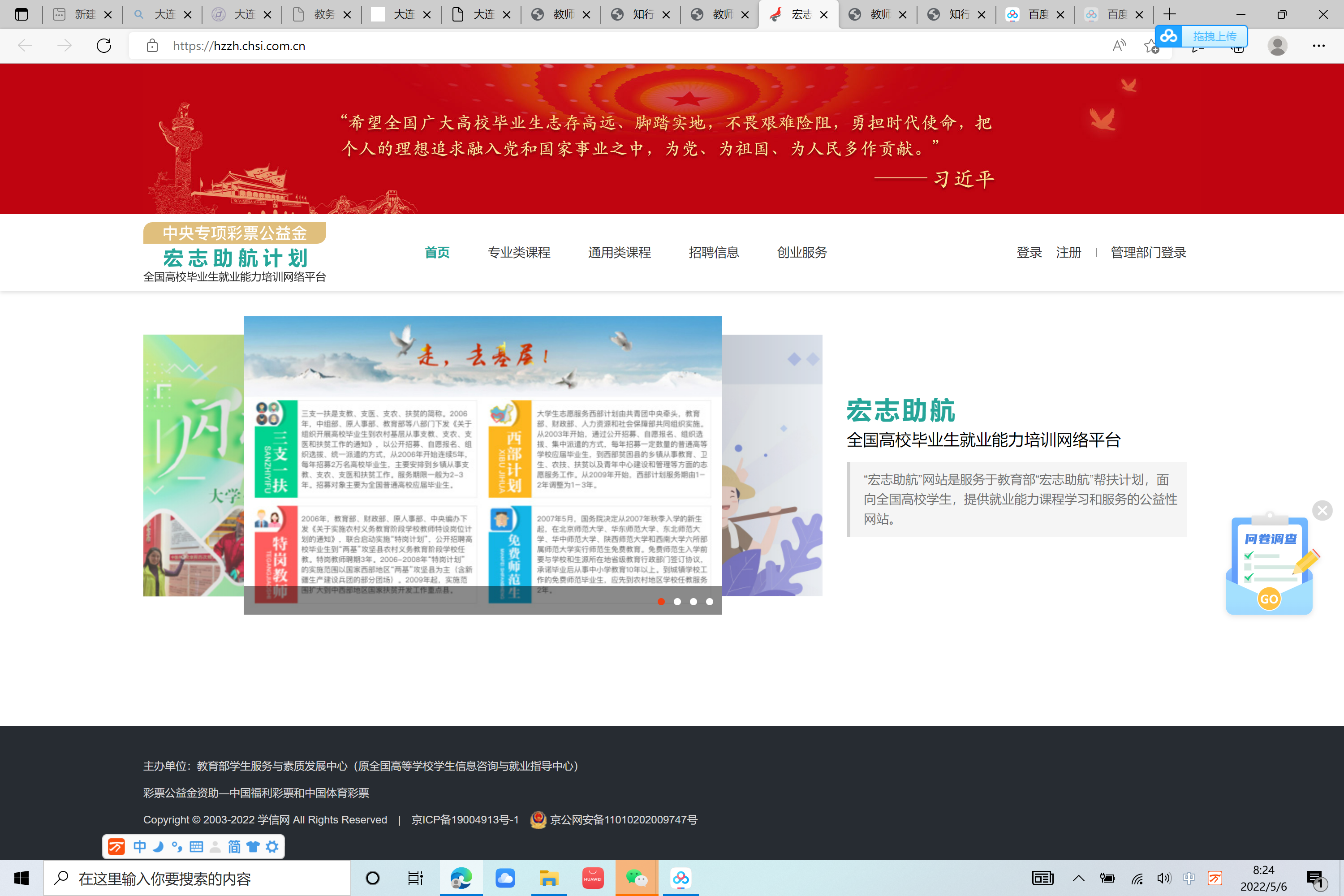 宏志助航计划(就业课程免费)此为中央专项彩票公益金宏志助航计划——全国高校毕业生就业能力培训网络平台。主要内容是专业课、通用课等。