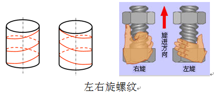 (1)右旋螺纹-轴线垂直放置的螺纹,螺旋线上升方向是右高左低